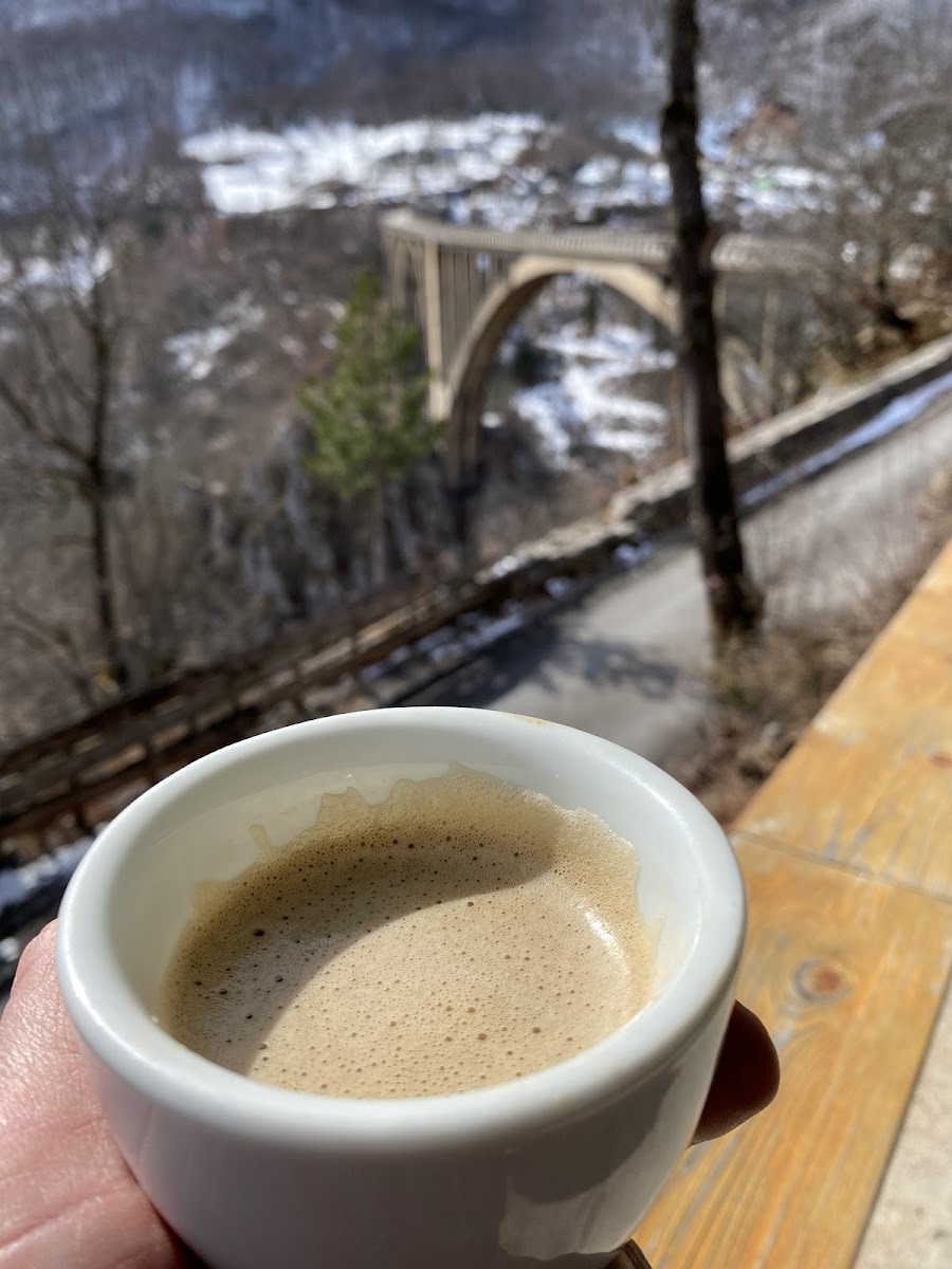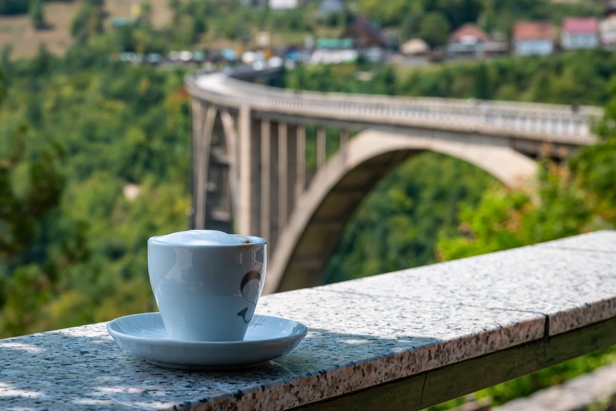 Imagine sipping a perfectly brewed coffee while gazing out over the stunning Tara Bridge. The café boasts a cozy yet vibrant atmosphere, where locals and travelers alike gather to relax and enjoy the breathtaking views of the Durdevica Bridge and the surrounding nature. As you settle in, the warm hospitality of the staff will immediately make you feel at home, adding to the café's charming appeal.