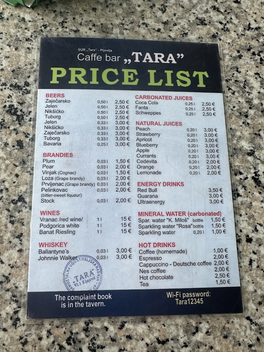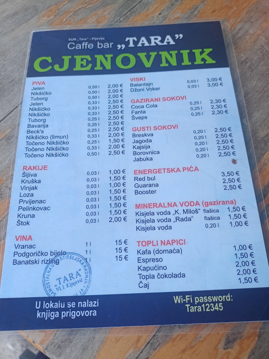 Welcome to Caffe Tara, a hidden gem nestled in the picturesque Bitine, Montenegro. This charming café offers guests a delightful escape with stunning views of the iconic Tara Bridge and the serene Durdevica Bridge. The menu is thoughtfully curated, featuring a selection of refreshing cold drinks, rich coffees, and delectable hot chocolates.